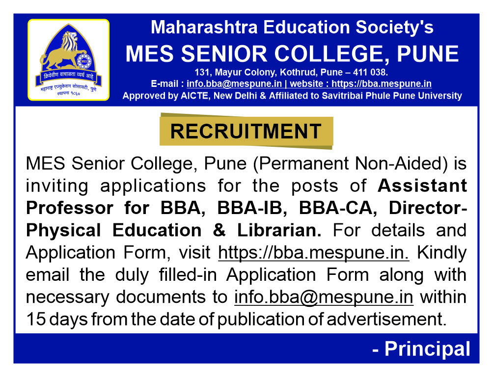 MES Senior College student, Netra Mali (FY BBA-CA) received 1st prize in the Monologue competition, “Actomania” in an intercollegiate event- “Minerva XXIV – 2024” (held on 17.03.2024), organised by ISB&M College of Commerce.
